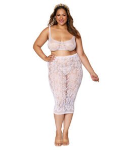 Dreamgirl Lace Fishnet Bralette & Slip Skirt White Queen Size